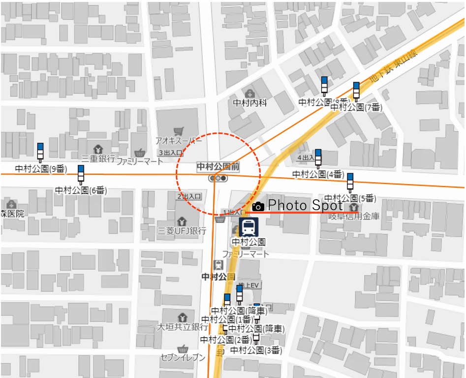 撮影場所:交差点「中村公園前」