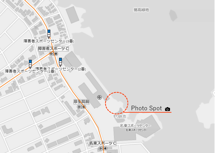 最寄りのバス停:障害者スポーツセンター